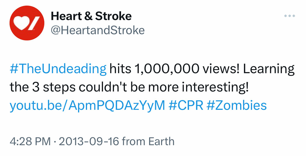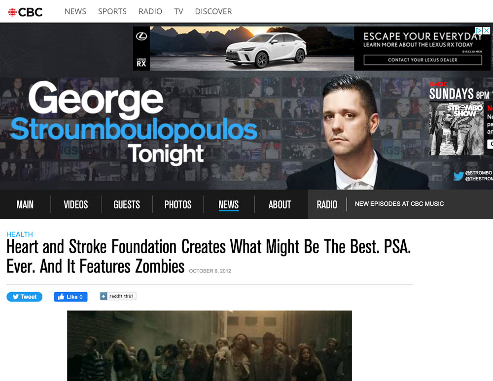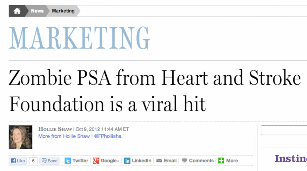 This began as a simple online film about CPR training. Thanks to our team and a very progressive client, it quickly turned into a month-long national event and viral sensation – with unprecedented earned media coverage, over 1 million YouTube views and breaking the North American record for most people learning CPR at one time (Guinness). See the case study at the bottom of the page.