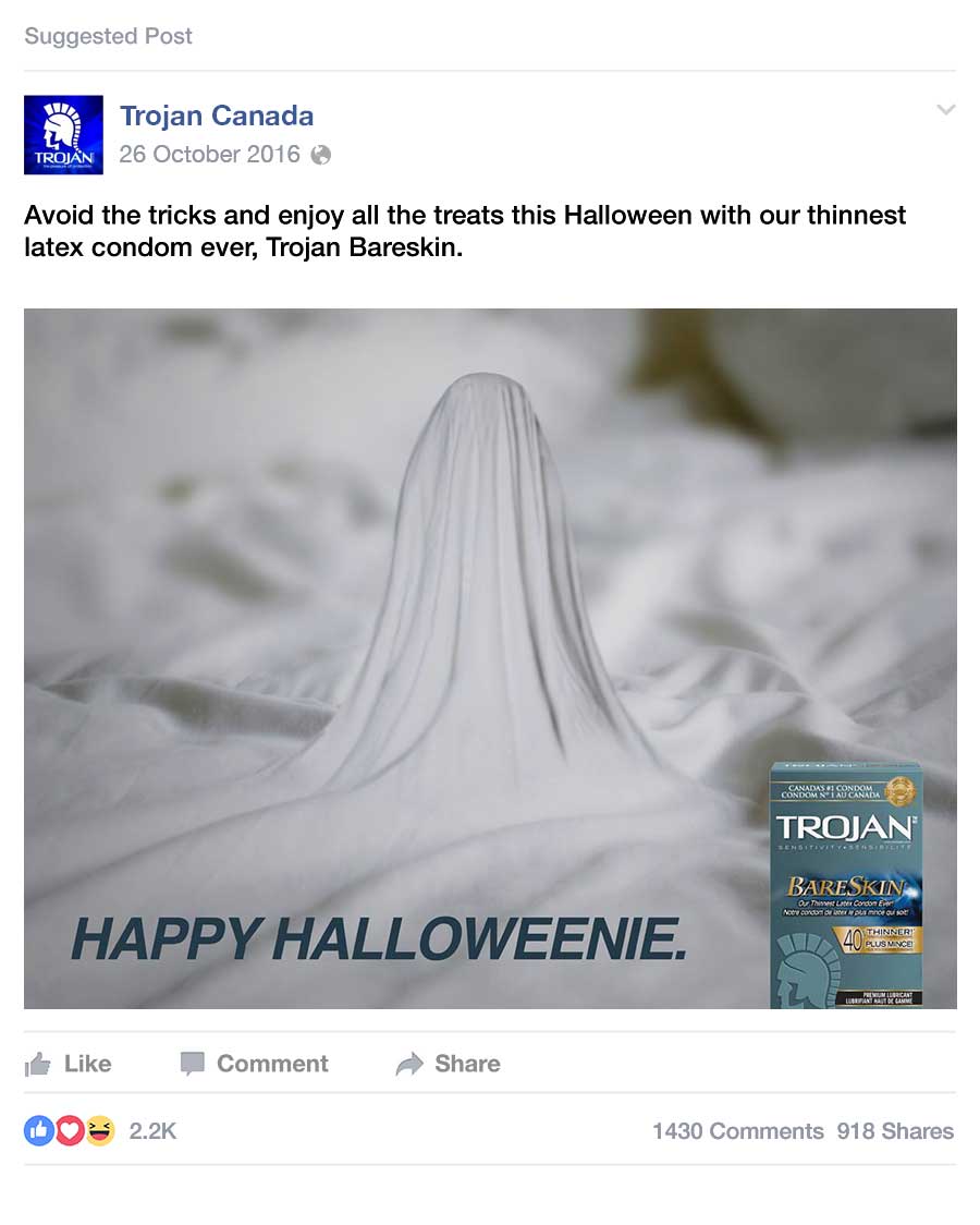 As a note, Trojan Canada’s social engagement improved 20x during my time working with them. Especially the Halloween(ie) post below.